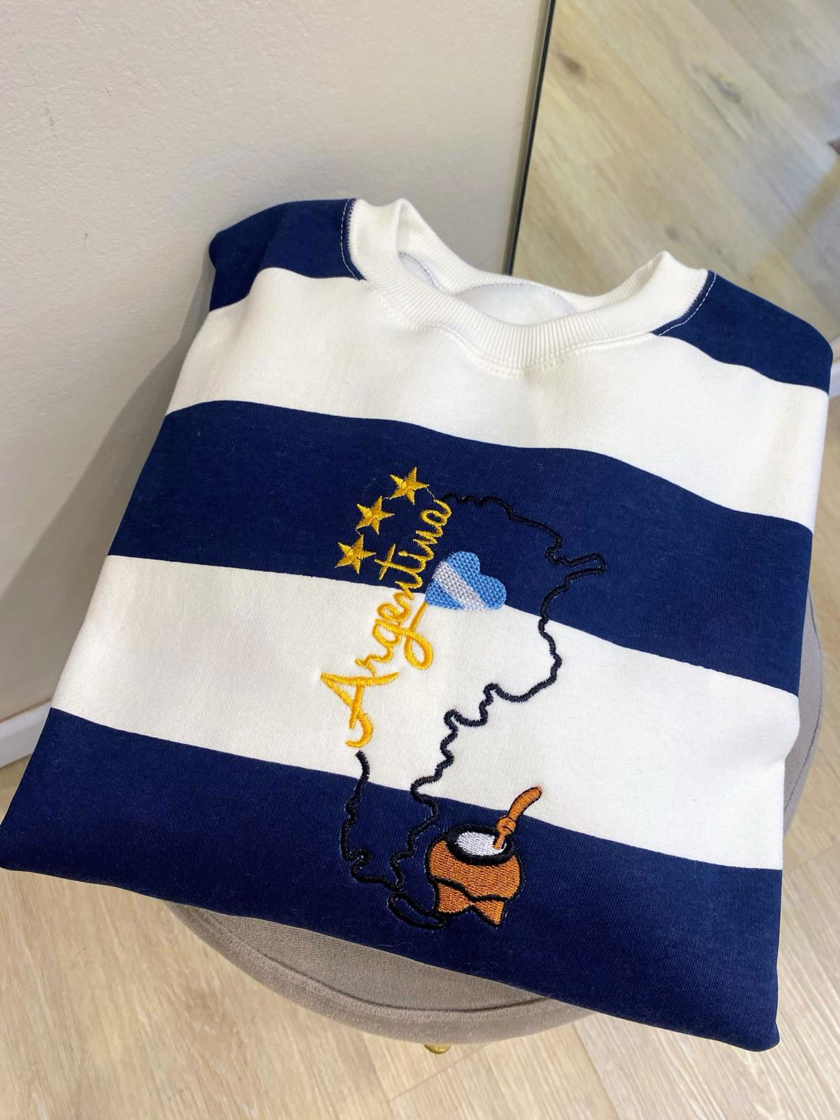Bordados de Argentina: mapa, mate, corazón y 3 estrellas.